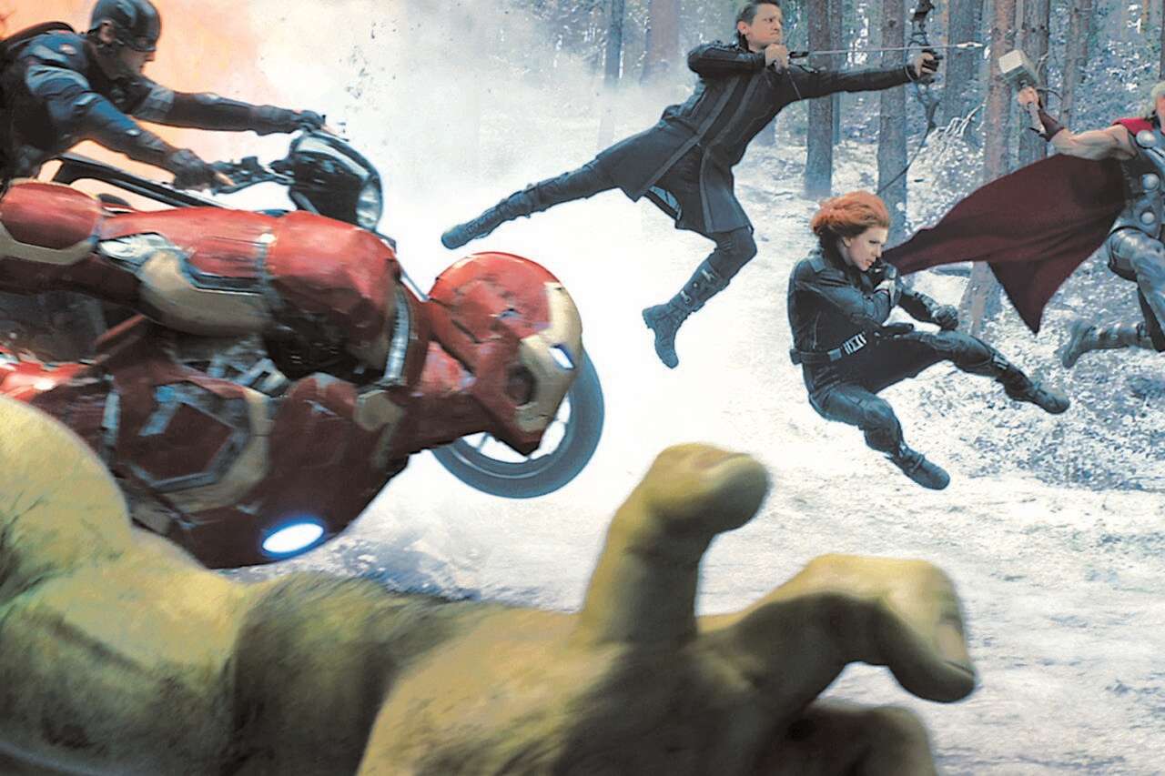 האלמנה השחורה, הענק הירוק ומולניר - כולם זכו למערכות כוכבים על שמם. מתוך "הנוקמים" עידן אולטרון" // צילום: מארוול