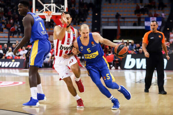 רול מנסה לעשות הגנה, הערב בפיראוס. עוד הפסד של הצהובים // צילום: אי-אף-פי