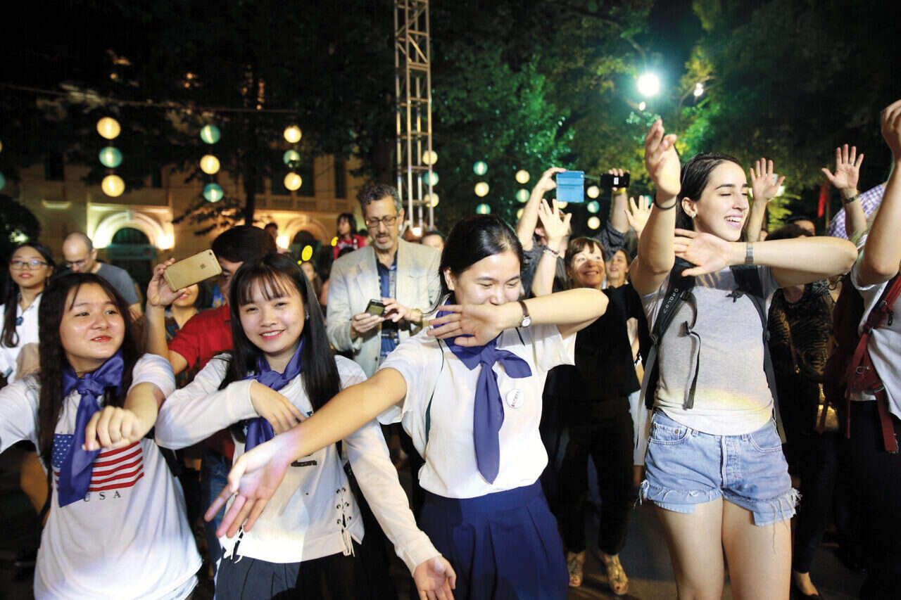כמו רבבות מתושבי האנוי, שנשפכים לרחובות סביב האגם הואן קיים, גם מינג וחברתה, ניאן הא (21), טיילו בין נגני הרחוב, הילדים על קטנועי הצעצוע ושחקני הדא קאו (מעין בדמינטון־רגל) - ונשאבו להרקדה. "קל ללמוד את הריקודים", אמרה ניאן, "וזה אומר משהו על גישתכם לחיים". ואילו ניאן טהו הא (34) הוסיפה כי "גיליתי שריקוד ההורה הוא ריקוד העצמאות שלכם, וזה נתן לי תחושה מדהימה".