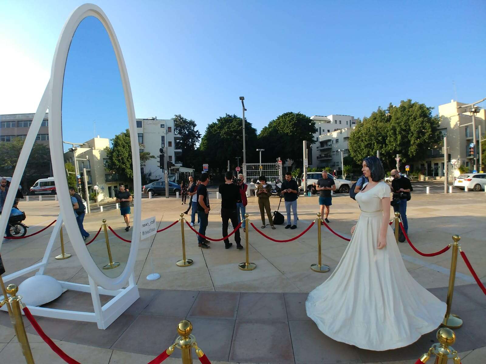 הדמות נראית כבובה של שרת התרבות לבושה בשמלה לבנה ארוכה ומולה מוצבת מראה גדולה שהדמות מביטה בה. הפיקוח העירוני בת"א ביקש מהאמן לסלק את המיצג תוך 4 שעות והוא צפוי להיקנס באלפי שקלים.