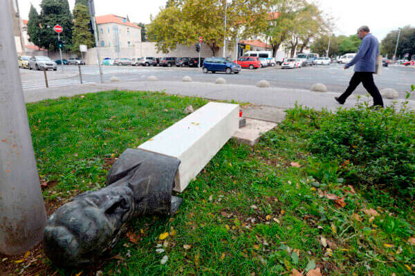 גבר קרואטי בן 65, שניסה להפיל את פסלו של לוחם אנטי פשיסטי בעיר ספליט בקרואטיה, נפצע באורח בינוני כשהפסל הכבד נפל על רגלו.