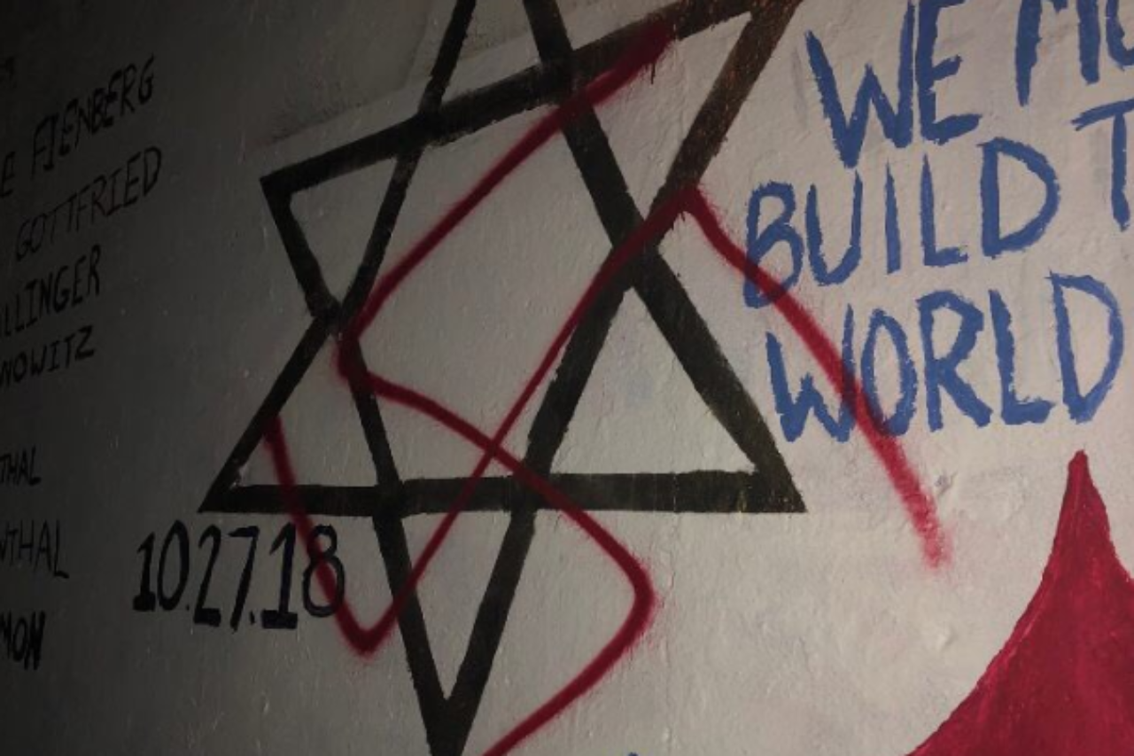 אלמונים ציירו צלב קרס על ציור קיר באוניברסיטת דיוק שבצפון קרולינה, שנועד לכבד את קורבנות הטבח הרצחני בבית הכנסת "עץ החיים" בפיטסבורג בחודש שעבר.