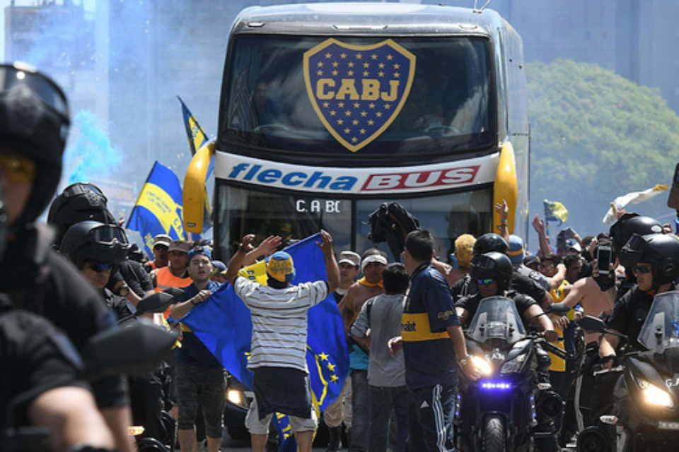אוטובוס השחקנים של בוקה אובטח שלא כראוי בדרכו לאיצטדיון ונרגם על ידי אוהדי ריבר. שמשות הרכב נופצו, רימוני גז נזרקו, ושני שחקני בוקה – אחד מהם הקפטן פבלו פרס – נלקחו לבית החולים. במקום לבטל את המשחק כפי שראוי היה לעשות, ההתאחדות הדרום אמריקאית התעקשה לקיימו כרגיל. הסיבות לכך הן כמובן כלכליות: זכויות השידור והעובדה שנשיא פיפ"א ג'יאני אינפנטינו נכח באיצטדיון.