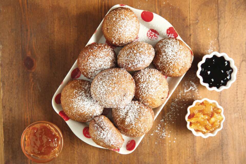 8. מעבירים לנייר סופג, מפדרים באבקת סוכר ומגישים חם עם ריבה.