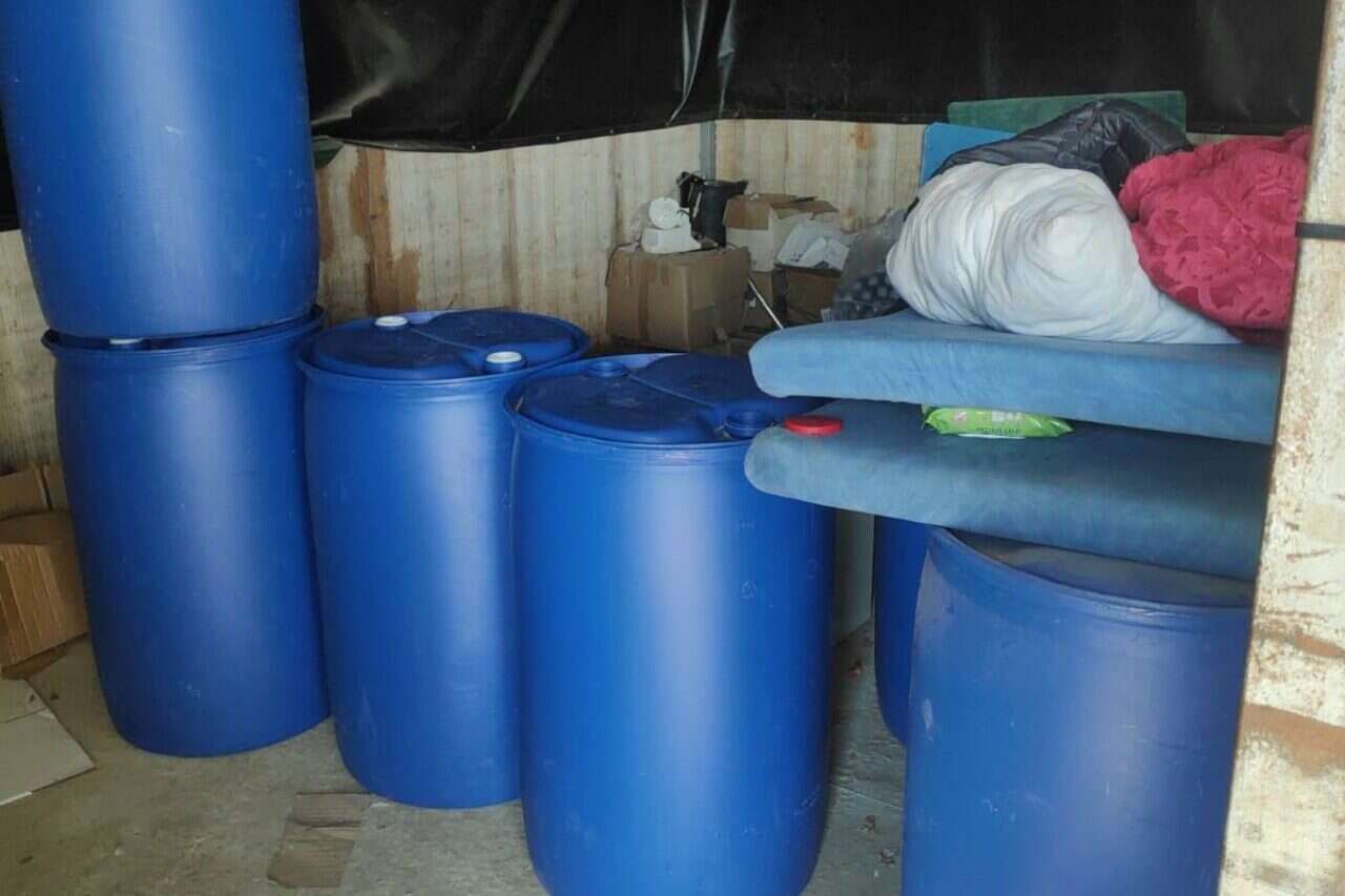במהלך החיפוש נמצאו חביות המכילות חומר החשוד כמתנול – חומר רעיל שכמות גבוהה שלו במשקה אלכוהולי מזויף עלולה לגרום לעיוורון ואף למוות – ארגזים סגורים עם בקבוקי משקה, תוויות הדבקה ומכונה למילוי ואטימת הבקבוקים.