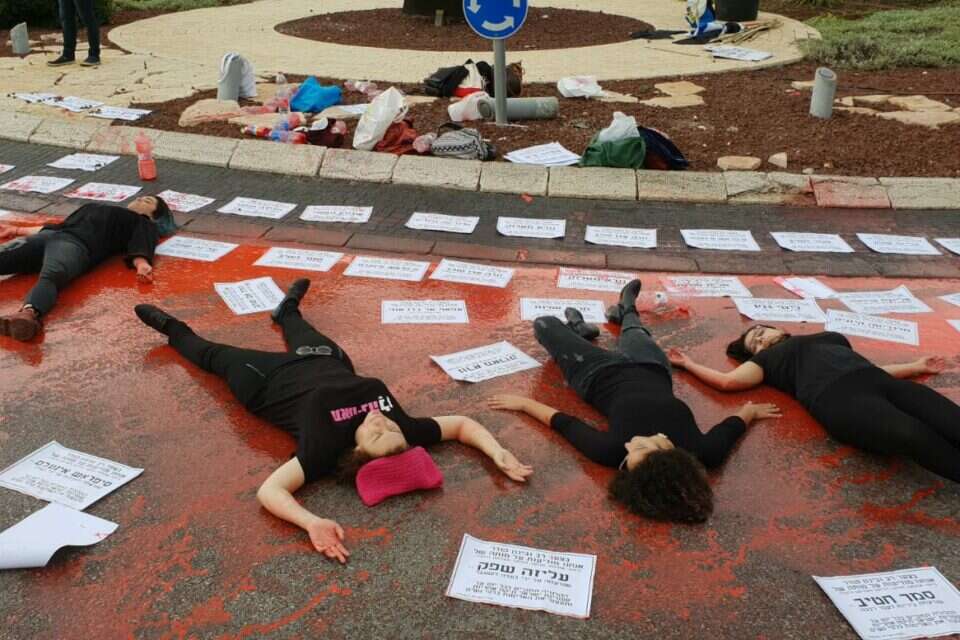 מפגן מחאה מול הכנסת: כעשר פעילות פמיניסטיות ערכו הבוקר (שלישי) מיצג נגד רצח נשים מול הכנסת בירושלים. במסגרתו הן לבשו חולצות שחורות ושכבו ב"שלולית דם". במקביל, פוזרו מודעות אבל עם שמות נרצחות. המפגינות גם חסמו כבישים באזור, ובהמשך היום צפויים מפגינים דומים בערים אחרות.
