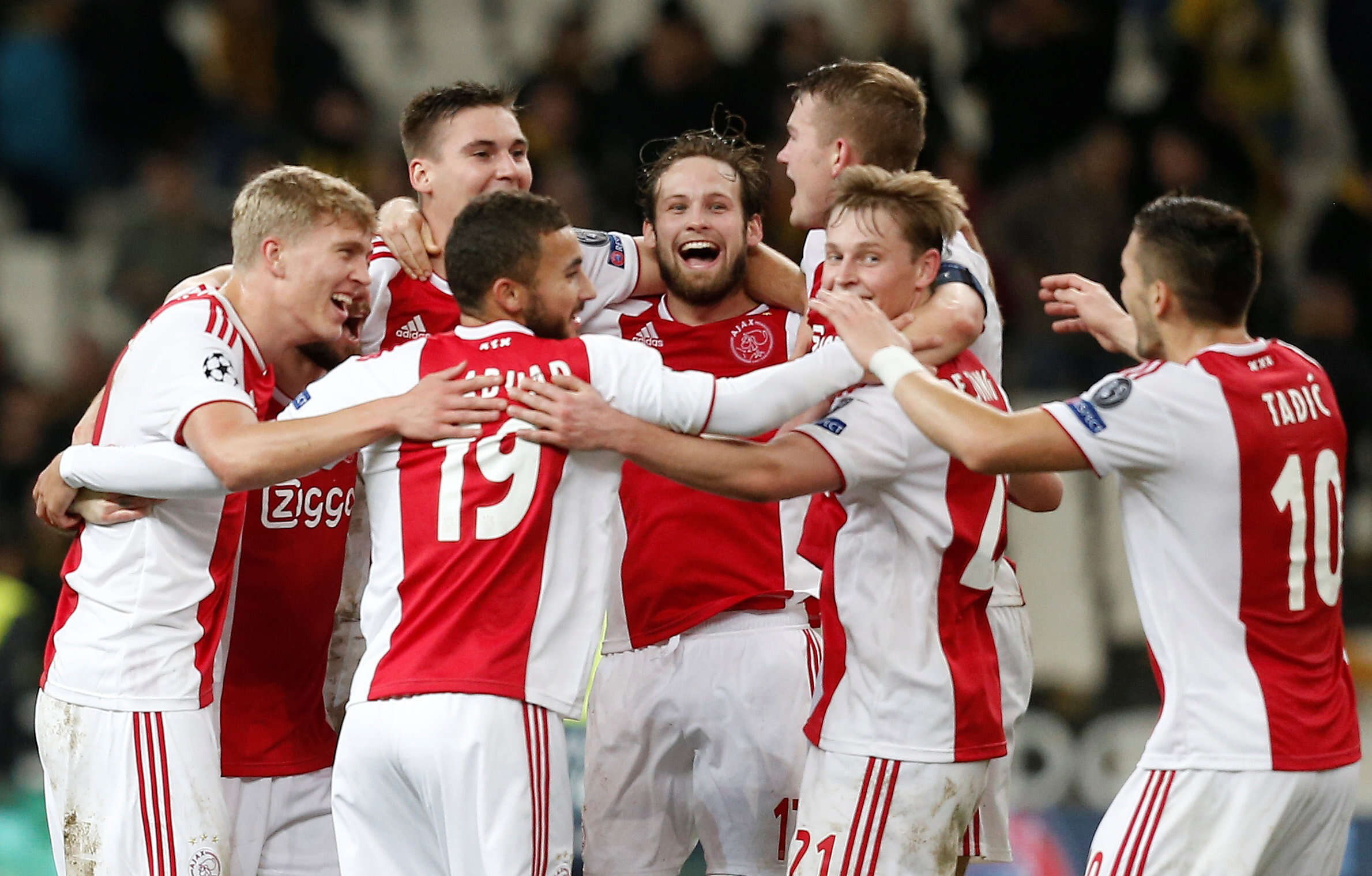 אייאקס חוגגת העפלה לשמינית הגמר, הערב // צילום: גטי