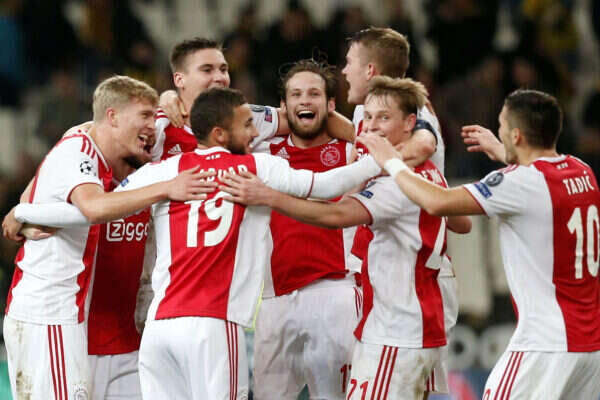 אייאקס חוגגת העפלה לשמינית הגמר, הערב // צילום: גטי