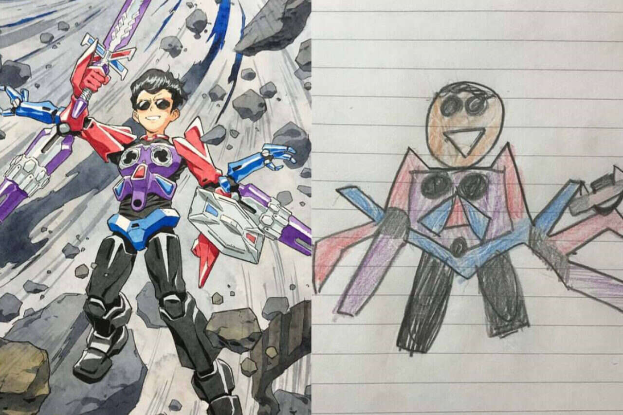 בניגוד לרוב ההורים, האב לא תלה את הציורים על המקרר והמשיך במעשיו, אלא קיבל מהם השראה והחליט להפיח חיים בדמויות וליצור גיבורי קומיקס על בסיס הציורים של בנו.