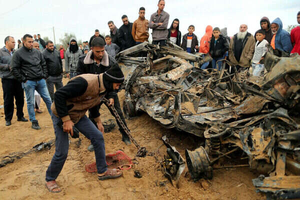 פינוי שרידי הרכב ששימש את הכוח הישראלי // צילום: EPA