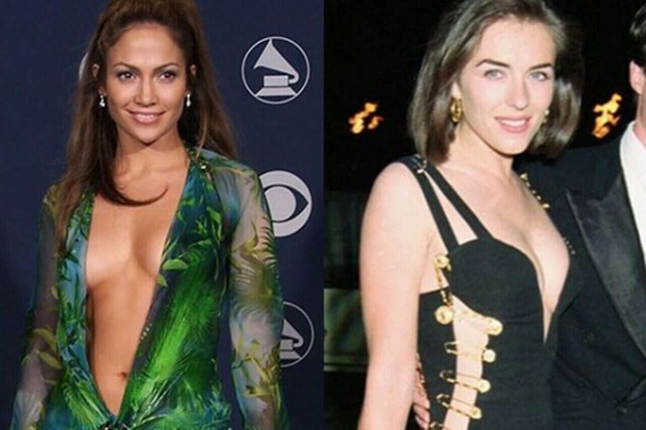 המחווה השנייה של דונטלה הייתה ללוק האייקוני שעוצב על ידי אחיה בשנות ה-90, עבור הדוגמנית והשחקנית אליזבת הארלי. הכוכבת העולה בזמנו, לבשה ורסצ'ה לפרימיירה של "ארבע חתונות ולוויה אחת", בכיכובו של בן זוגה דאז, יו גרנט והפכה לשם מוכר בין לילה.
