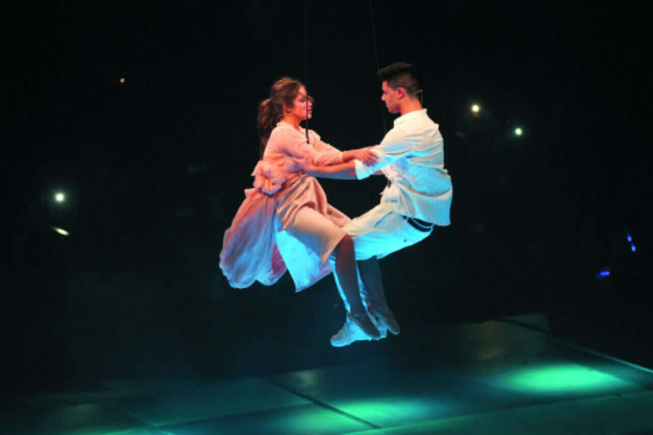 בתחילתו של הקטע, מרגי מתחיל לשיר ובהמשך קירל מצטרפת אליו. ברגעי השיא הם מתעופפים למעלה בעזרת חבל מתכת שקשור לתקרה ומחובר למנוע שתלוי על גג האולם.
