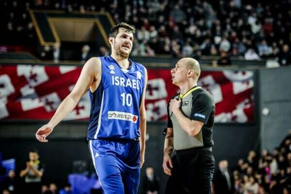 צילום: פיב"א אירופה // גיא פניני בא בטענות לשופט, אתמול במשחק ההפסד בגיאורגיה