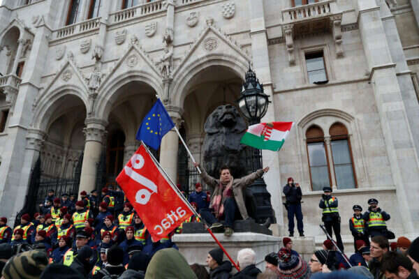 מפגינים בבודפשט נגד חוק העבודה החדש // צילום: רויטרס