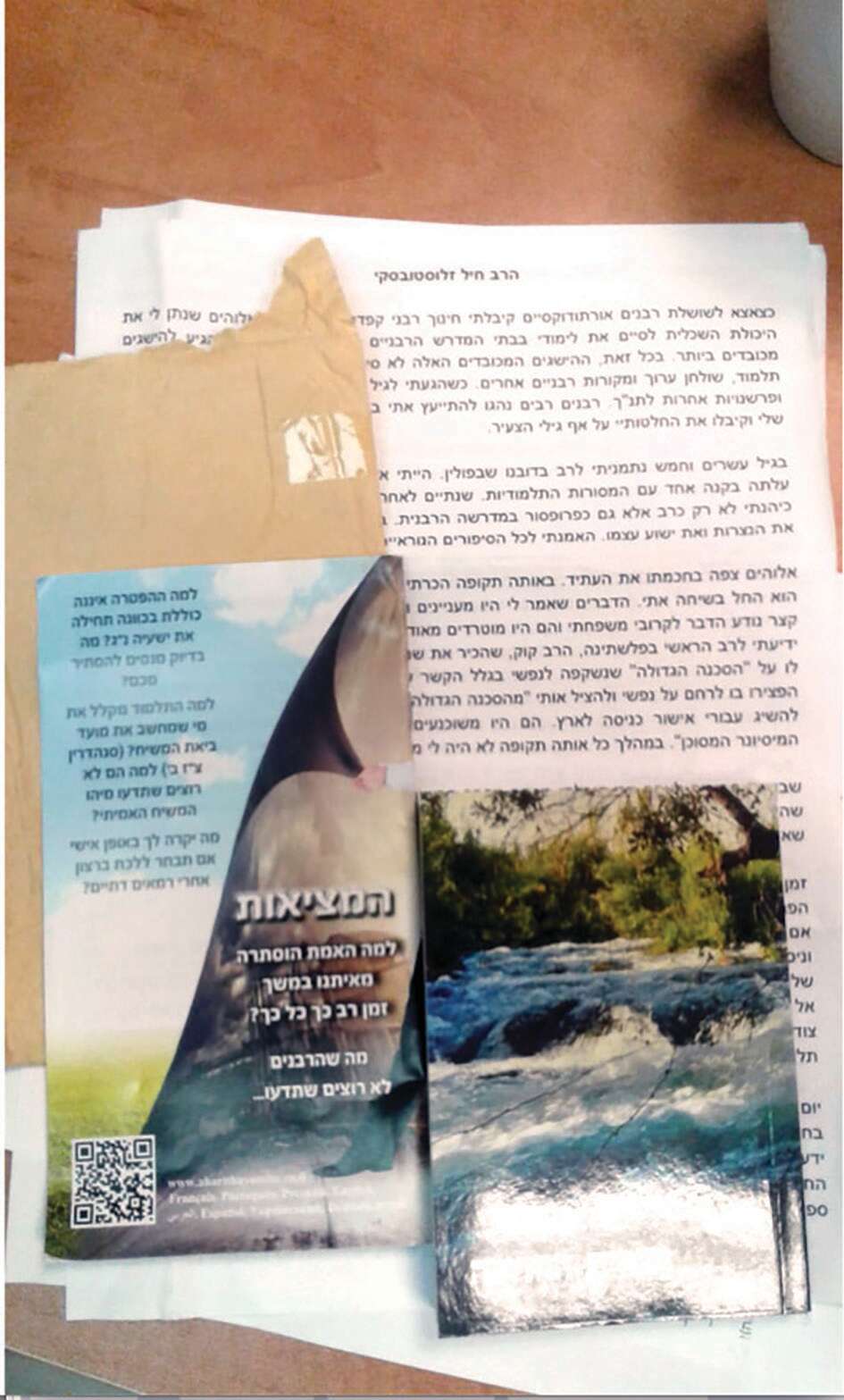 במסמך טען אותו "רב" שהוא שימש מזכיר הרבנות הראשית, וששוכנע שישו הוא המשיח. "הדרשה על ההר פתחה בפני עולם חדש, עולם מלא יופי וכבוד. התרגשתי מהדברים שקראתי, עד כדי כך שלמרות השעה כרעתי ברך לראשונה בחיי והתפללתי. בפעם הראשונה בחיי התפללתי בשם ישוע", נכתב בין היתר. למסמך צורפו תכנים מוכרים של ארגונים "יהודיים משיחיים", שכללו ספר בשם "המציאות", ושבו הם תוהים "למה האמת הוסתרה מאיתנו במשך זמן רב כל כך" ו"מה שהרבנים לא ירצו שתדעו". כמו כן, צורף לחומר גם ספר הברית החדשה.