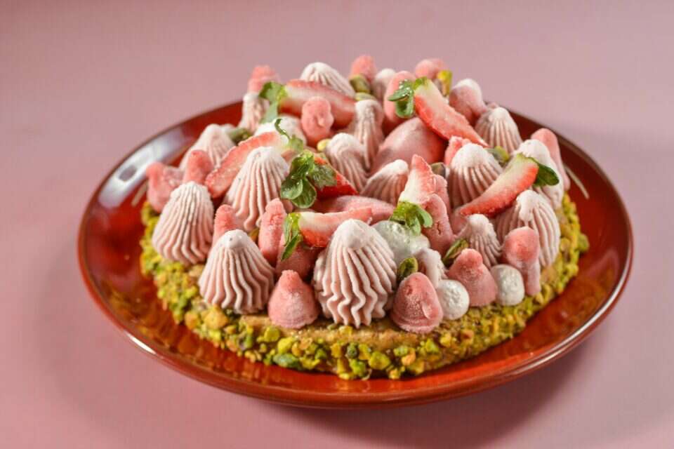 סאנדיי כנאפה - גלידת מסקרפונה עשירה, שערות קדאיף קלויות בחמאה, גנאש פיסטוק ושוקולד לבן, שברי פיסטוק קלוי ומלוח, וקצפת כמובן.