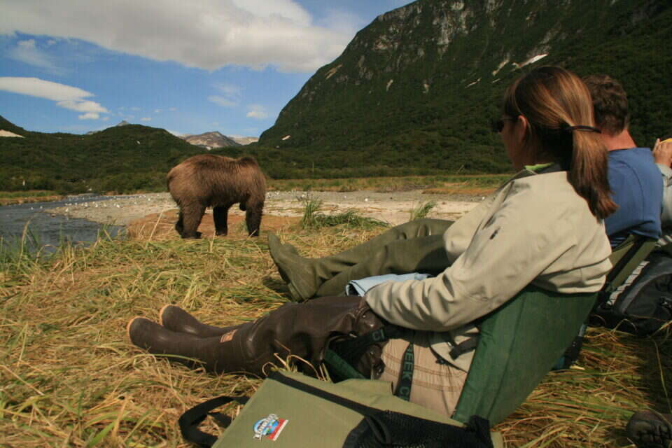 המדריכה ראתה שאני מתוחה, ציחקקה מעט והרגיעה אותי תוך כדי תזכורות חוזרות ונשנות לצלם תמונות “כי בשביל זה באת!” הדוב כמובן עצר במרחק ממש בטוח מאיתנו, הוא בכלל לא רץ אלינו, זה סתם היה נראה כך. המתח והפחד התחלפו בהתרגשות ומשם המשכנו, מנוסים יותר, לטייל במרחבים. השעות הבאות עברו במהירות שיא, כשמדי פעם אנחנו נעצרים, מתיישבים או מתכופפים, וצופים בדובים הולכים במרחק, מרחרחים את האוויר, נעמדים על שתיים, נכנסים למים לשחיה, אורבים לסלמונים ומזנקים עליהם במהירות שיא.