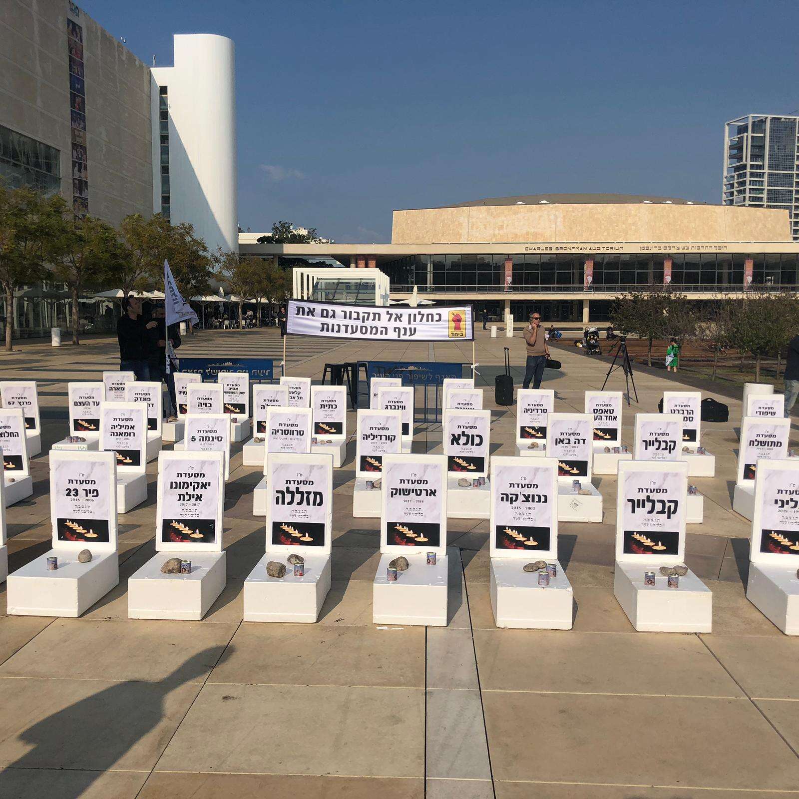המצבות במיצג המחאה הן לזכרן של מסעדות שונות שנסגרו כדוגמת: בליני, מיסטר ומיסיס לי , אוסטריה דה פיורלה, כתית, דה-באן, אורנה ואלה, גאריג, מיטבול, פונדק דה לוקס, עד העצם, אסיה, ננוצ'קה, החלוצים 3, דייגו סאן ועוד.