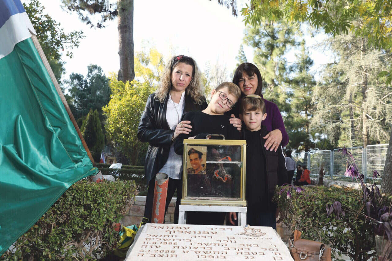 דליה (מימין) ושירי, עם הילדים אשל ודביר על רקע קברו של דביר ז"ל // צילום: מרים צחי