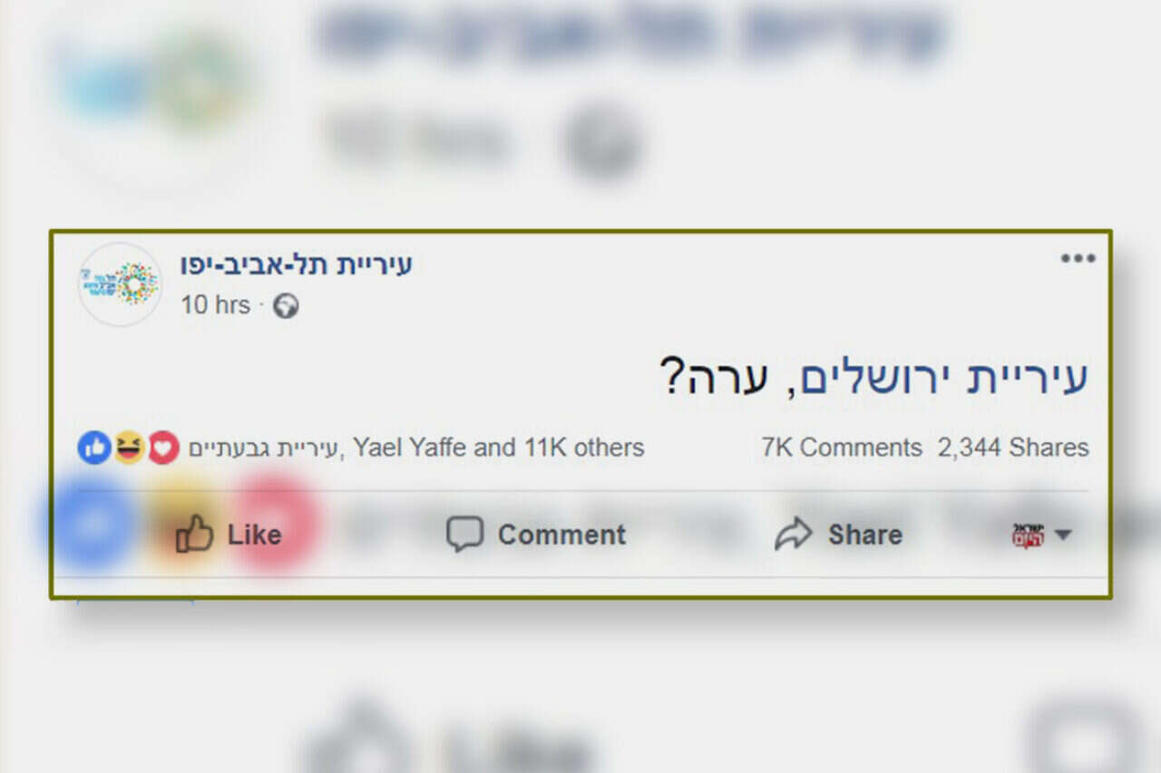 את השעות הראשונות של שנת 2019 פתחה עיריית תל אביב בקריצה ספק עקיצה לעיריית ירושלים. בעמוד הפייסבוק של עיריית תל אביב פורסם הפוסט: ירושלים, ערה? :)