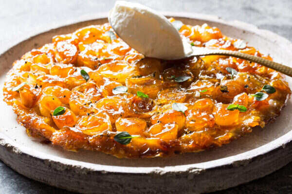 טארט טאטן בצלים בקרמל וריבת משמשים