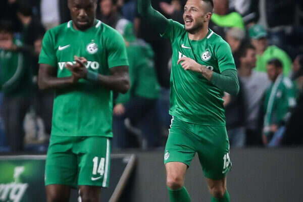 סינטיהו סלליך חוגג את הראשון של מכבי חיפה, הערב במושבה // צילום: עודד קרני
