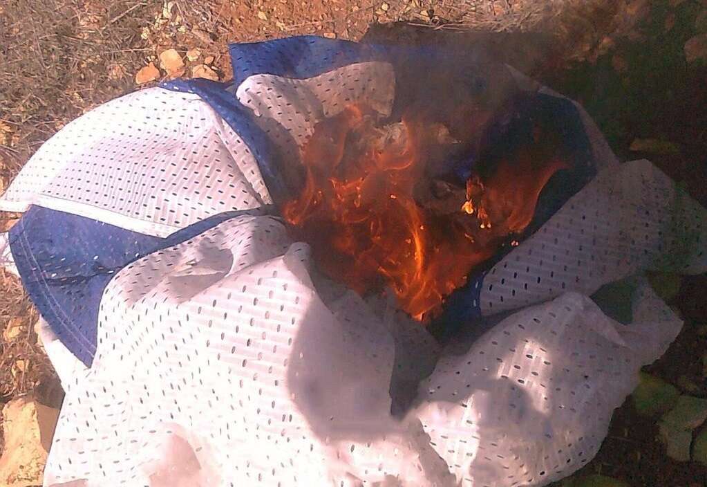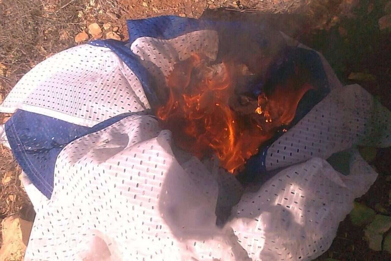 דגל ישראל עם הכיתוב, "מוות לציונים" // צילום: תקשורת שב"כ
