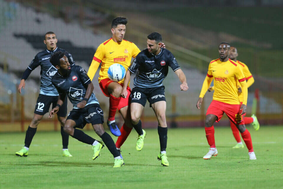 מאבק על כדור באשדוד. התיקו לא עזר לשתי הקבוצות // צילום: לירון מולדובן // מאבק על כדור באשדוד. התיקו לא עזר לשתי הקבוצות