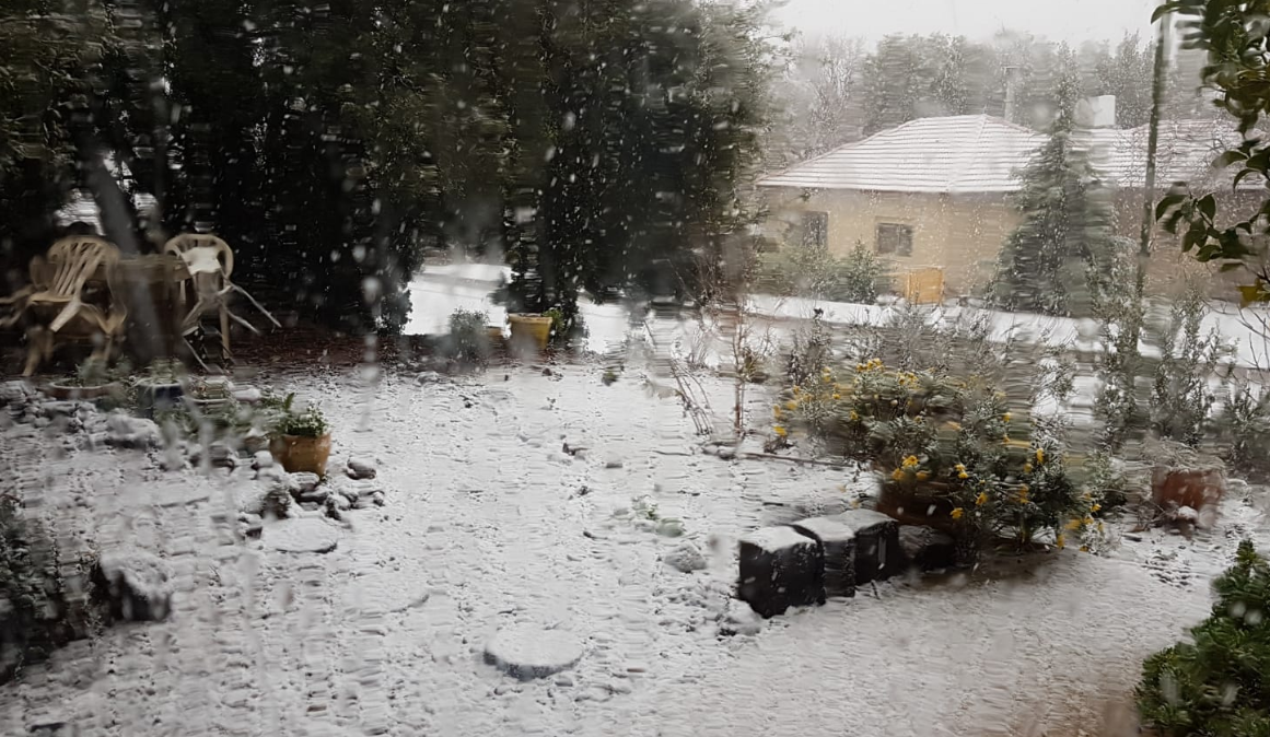 שלג כבד הבוקר (שני) בכפר הנופש רימונים נווה אטי"ב // צילום: מיכל קראדי
