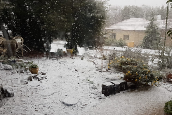 שלג כבד הבוקר (שני) בכפר הנופש רימונים נווה אטי"ב // צילום: מיכל קראדי
