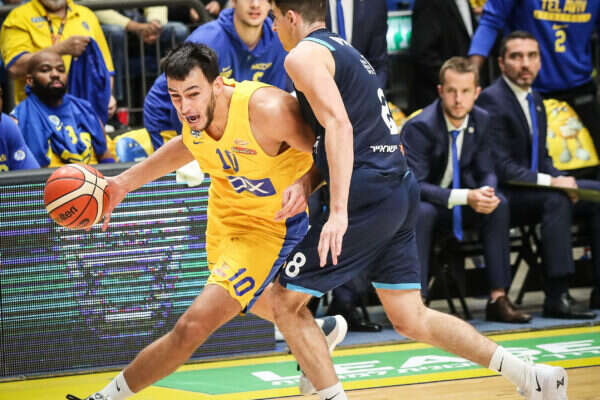 נמרוד לוי עושה הגנה, אתמול מול הפעול אילת. לא קיבל יותר מדי צ'אנסים // צילום: עודד קרני