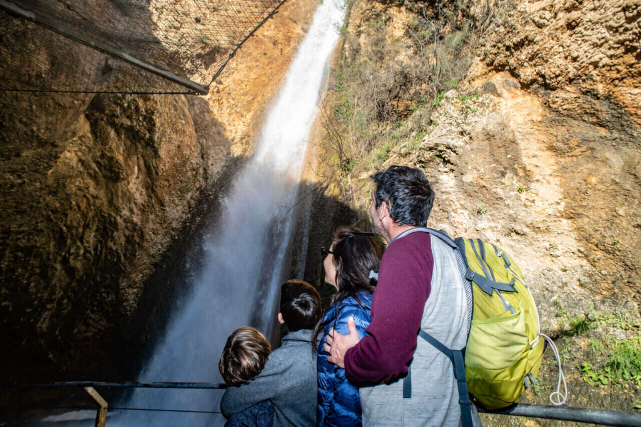משפחת מטיילים בנחל עיון (התנור) שבצפון // צילום: אייל מרגולין, ג'יני