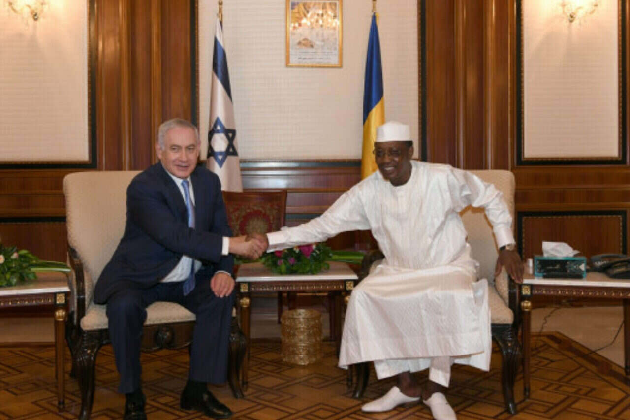 ראש הממשלה נחת הבוקר בצ'אד תחת אבטחה כבדה. נתניהו התקבל בנג'מנה, בירת צ'אד, על ידי שר החוץ מהמט זיני ובכירים אחרים. לאחר מכן נפגשו השניים לפגישה רשמית. שני מטוסי הרקולס של חיל האוויר הביאו את ציוד האבטחה מהארץ, ובכלל זה מכונית משוריינת. נתניהו נפגש גם עם הנשיא אידריס.