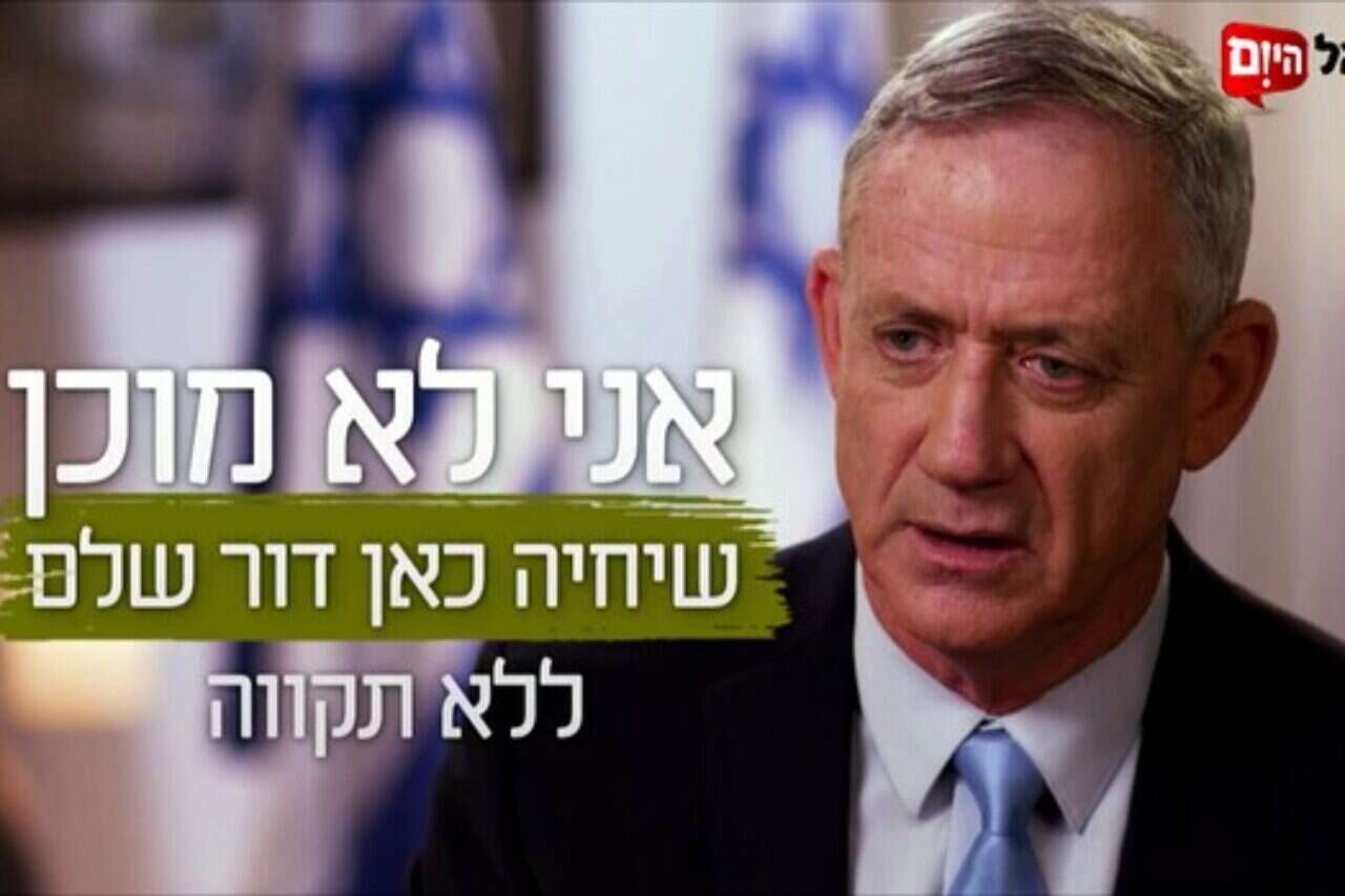 באחד הסרטונים, מזכיר גנץ את חיסולו של ג'עברי בנובמבר 2012, בשעה שגנץ היה הרמטכ"ל. אותה פעולת חיסול של בכיר החמאס, אחד מאדריכלי חטיפת גלעד שליט, היוותה את יריית הפתיחה למבצע "עמוד ענן". עם זאת, גנץ מדגיש את הרצון להשיג הסכם שלום ובסרטון מופיע הכיתוב: "זו לא בושה שתהיה חתירה לשלום". באחת התמונות מופיעה תמונה של ראש הממשלה בנימין נתניהו עם יו"ר הרשות הפלשתינית יאסר לערפאת.