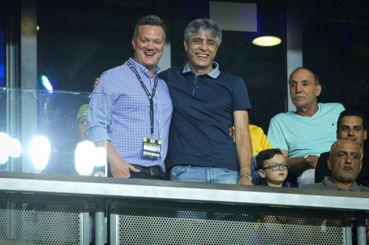 אוחנה עם חוגג. "אליפות לא ניקח העונה וכנראה שגם לא נרד ליגה" // צילום: אלן שיבר