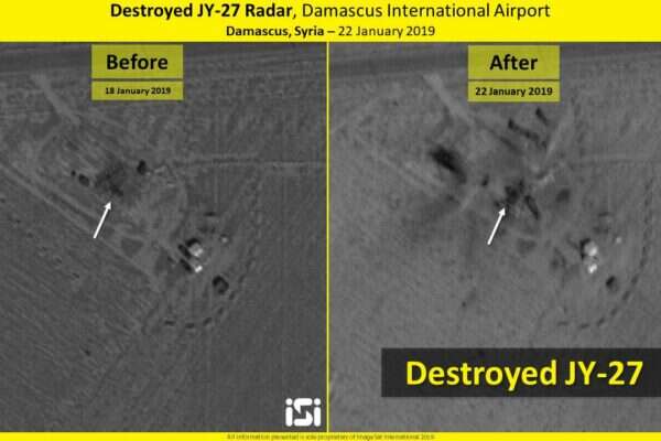 בתמונות להלן: לפני ואחרי התקיפה של מחסני נשק איראניים, תחמושת ומבנים בשדה התעופה של דמשק // צילומים: ISI, ImageSat International