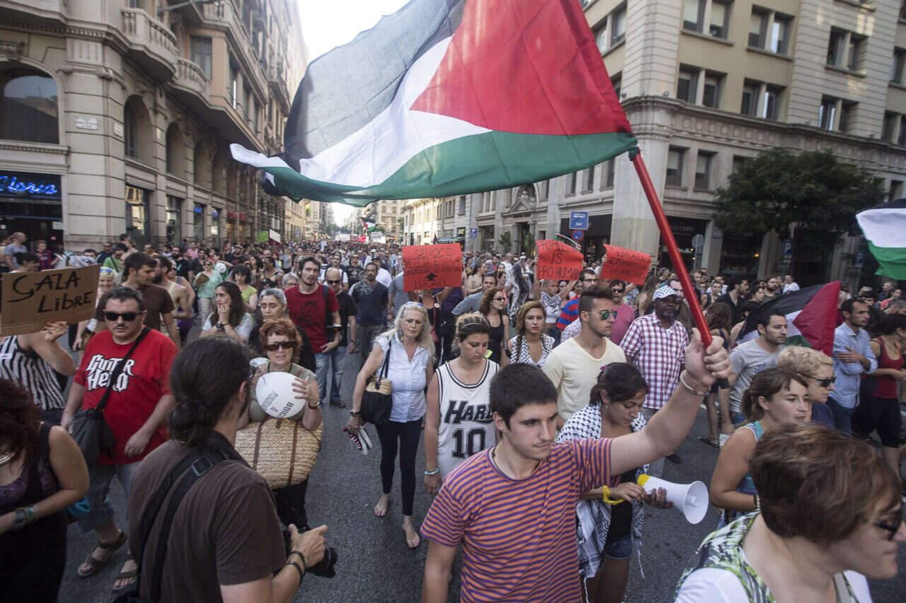 מפגינים שתומכים בחרם נגד ישראל, בברצלונה // צילום ארכיון: Anadolu Agency