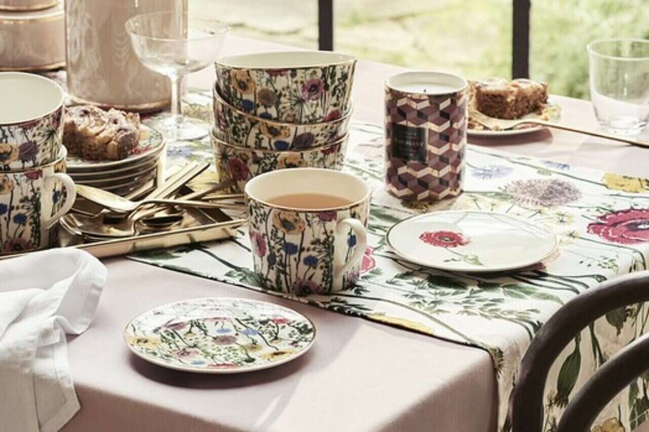 על הכוסות והצלחות ניתן לראות פרגים אדומים ועל מצעי המיטה שדות של פרחים, עוד פרינטים שנוכחים בקולקציה הם אלו הגאומטריים, דמויי אריחים.