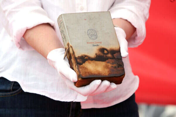 הנובלה היפה והצובטת הזו, שגולשת אל הקלאסי והרומנטי ומזכירה ביותר מקריצה את הדרמה של היינריך פון קלייסט, מסופרת כבדרך עדות שמיעה: המספר פוגש בתחילתה בסוחר ספרים ותיק, שמגולל בפניו "סיפור משונה" על אספן זקן שאיבד את מאור עיניו. האספן, שהחזיק באוסף הדפסים מרשים - מתיקייה שלמה של אלברכט דירר ועד הדפס "האנטיופה" של רמברנדט - אינו יודע שגרמניה הפסידה במלחמה, שהמצב הכלכלי בכי רע ושבעטיו נאלצו אשתו ובתו למכור את מרבית האוסף, רק כדי להעלות אוכל לשולחן המשפחה. עתה הוא מציג בפני סוחר הספרים את "האוסף" שלו - שאינו אלא גיליונות ריקים ולבנים. הסוחר, כדי לא לצערו, משתף פעולה עם המיצג שנקרה מולו.