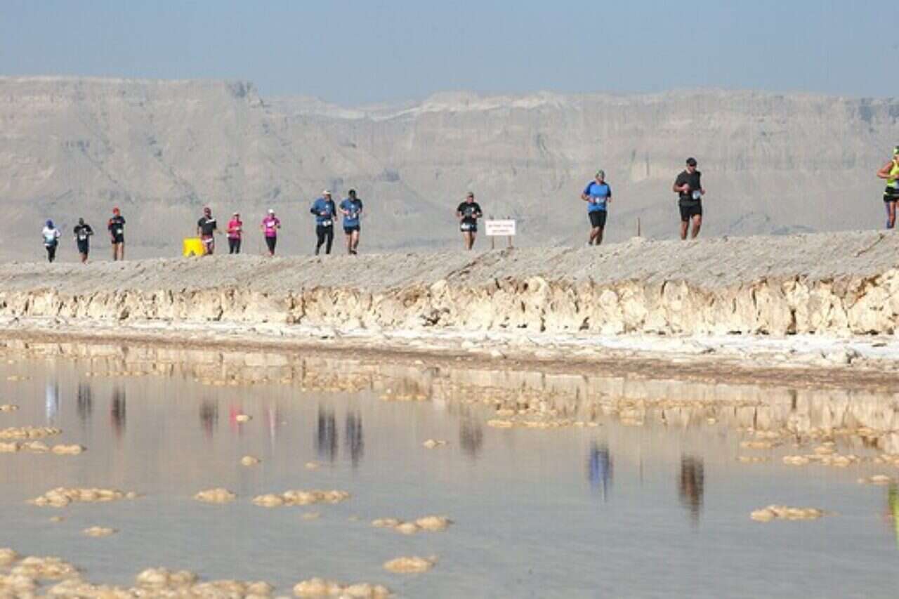 כשאני מגביר את הקצב אני מדביק את קלייר מקסטד, חובבת ריצה מבריטניה שמשתתפת במרוצים בכל העולם, מתעדת אותם בווידאו ומעלה לערוץ שלה ביו־טיוב, "וויילד ג'ינג'ר". הקלילות שבה היא מקפצת ומצלמת באמצעות גו־פרו על מקל סלפי מעוררת קנאה. כמוה יש עוד תיירים־רצים שהגיעו מכל העולם כדי להשתתף בריצה בים המלח, ובהם גם משלחת רצים מירדן השכנה. אחד מהם הוא מחמוד מוחמד־מוסטפא, שייצג את מדינתו באולימפיאדת סידני 2000, ובים המלח סיים במקום השלישי את המקצה באורך 10 ק"מ.