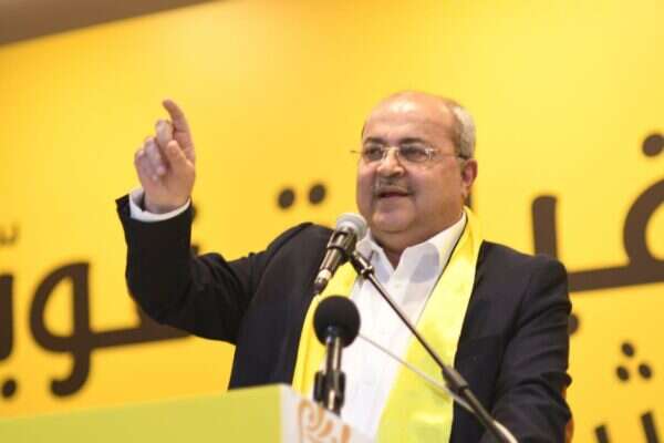 חה"כ אחמד טיבי (במרכז) בוועידת תע"ל בערערה, היום // צילום: דוברות תע"ל