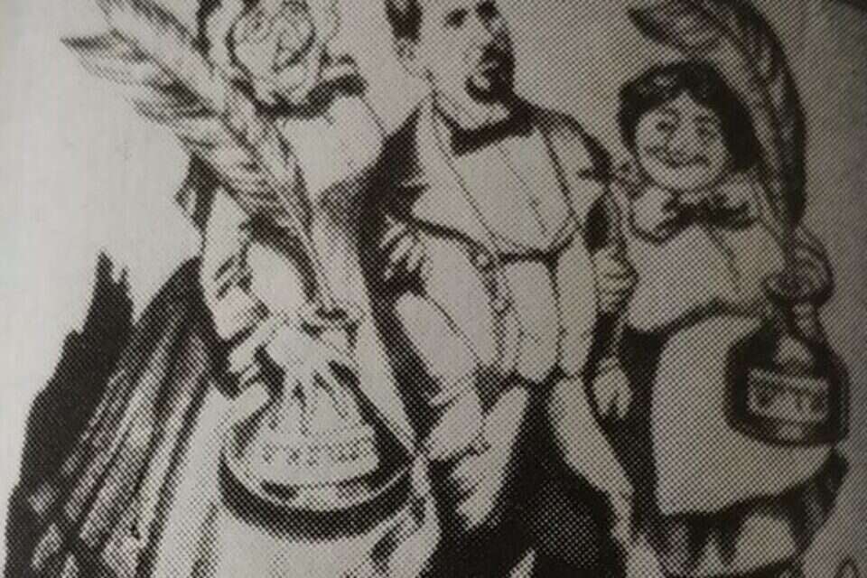 דימוי הפילגש בא לידי ביטוי בקריקטורה נוספת. ביאליק הולך ברחוב עם אשתו, העברית, הלבושה בבגדים נאים. מי מציצה מעבר לכביש? זו היידיש, עם סינר, צעירה ויפה, וחובקת ילד, ממזר, בן לא חוקי שילדה לביאליק, והילד צועק טאטע!, "אבא".