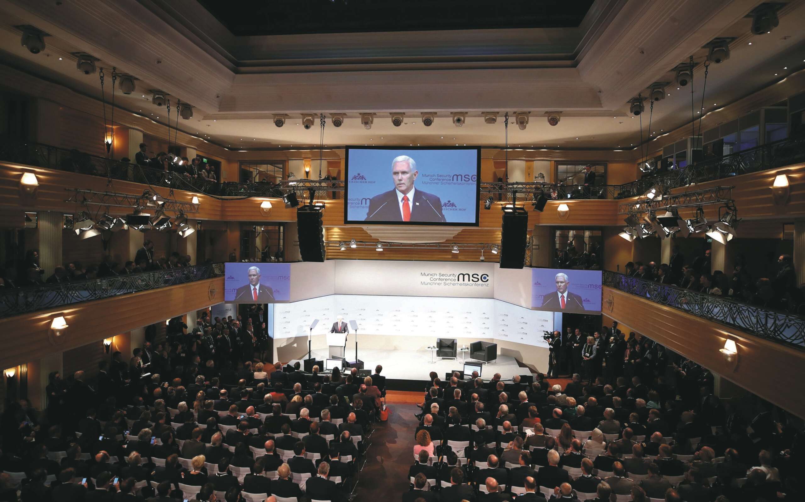סגן נשיא ארה״ב, מייק פנס, יצא בוועידת הביטחון של מינכן בהתקפה חריפה על המשטר באיראן והאשים אותו בתכנון שואה חדשה, ובהיותו האיום הגדול ביותר לשלום וליציבות במזרח התיכון.