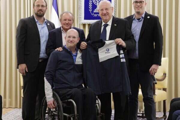 נשיא המדינה ריבלין ונשיא העמותה מוריס קאהן (משמאל) // צילום: עמוס בן גרשום/לע"מ