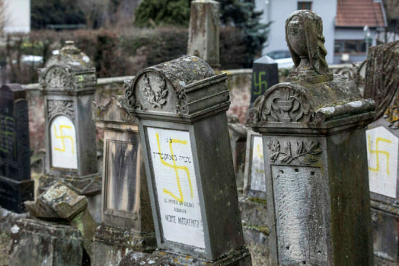 צלבי קרס רוססו על הקברים בבית העלמין היהודי, צרפת // צילום: איי.פי