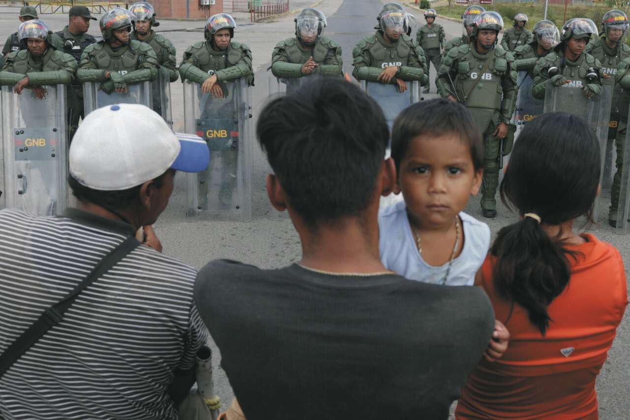 חיילים ברזילאים עם סיוע לאזרחי ונצואלה // צילום: אי.אף.פי