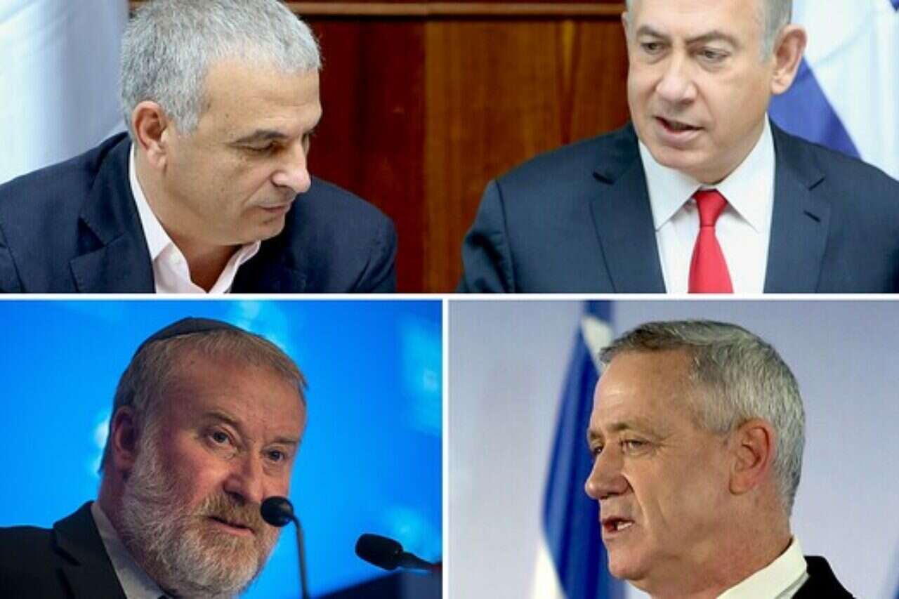 נתניהו, כחלון, גנץ ומנדלבליט // צילומים: אלכס קולומויסקי, גדעון מרקוביץ, אורן בן חקון