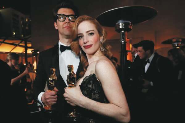 חבורה של גברים לבנים קיבלה אוסקר על סרט העוסק באפליית שחורים. צוות "הספר הירוק" בטקס // צילום: AFP