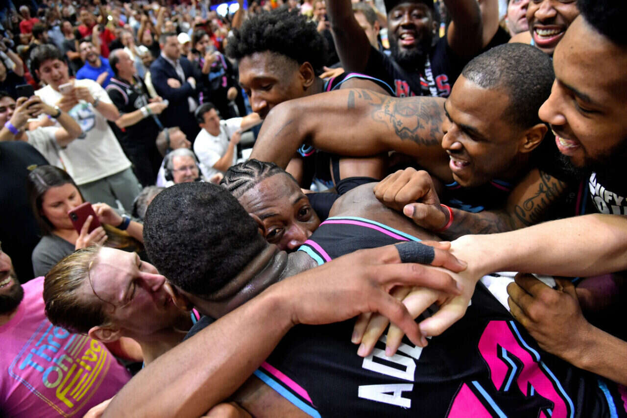 ווייד בטירוף אחרי שלשת הניצחון, לפנות בוקר // צילום: אי-פי