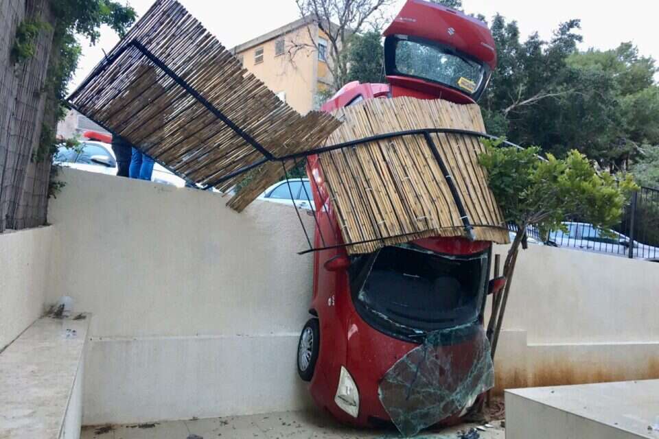 המשטרה בודקת נסיבות התהפכות רכב היום (שבת) ברחוב אלכסנדר ינאי בחיפה עד "נחיתתו" במרפסת בית.